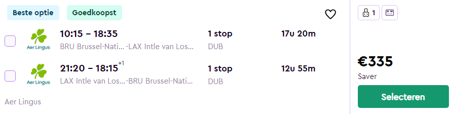 Andere voorbeelddata Los Angeles vanuit Brussel: