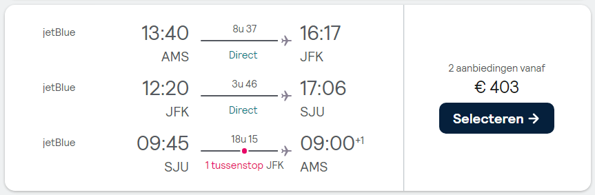 Amsterdam – New York – San Juan – Amsterdam – €403