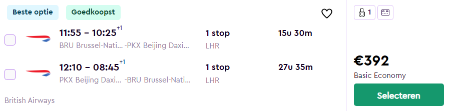 Brussel – Peking – €392