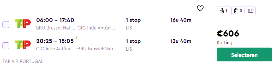 Andere voorbeelddata Rio de Janeiro vanuit Brussel: