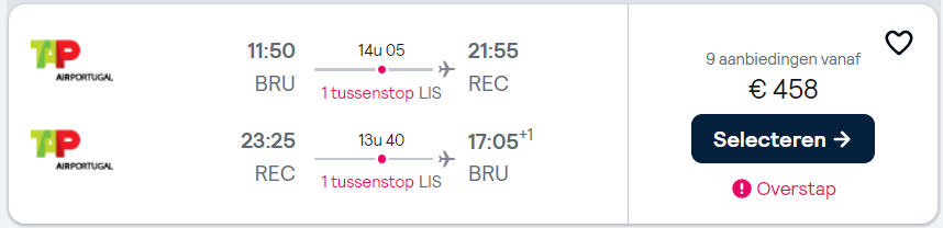 Andere voorbeelddata naar Rio de Janeiro vanuit Brussel: