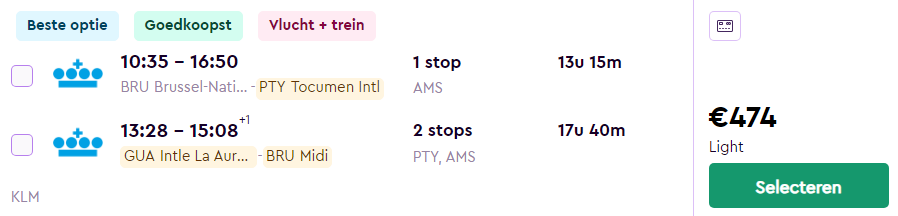 KLM & Air France hebben “trein+vlucht” tickets waarbij je vanuit Brussel vertrekt en via Amsterdam of Parijs rechtstreeks naar Panama of Costa Rica vliegt!