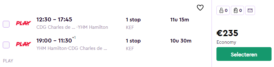 Andere voorbeelddata naar Toronto vanuit Parijs: