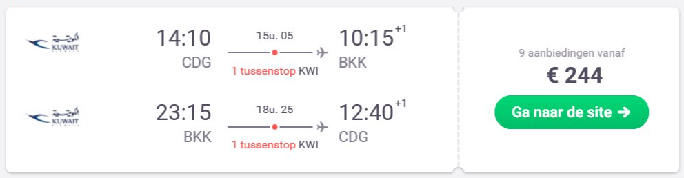 Wow! Momenteel heb je een uitstekende kans om de tropische Thaise stranden te ontdekken! De luchtvaartmaatschappij Kuwait Airways biedt momenteel spotgoedkope vliegtickets aan naar Thailand. Vlieg voor maar €244 retour naar Bangkok vanaf Parijs! Mogelijk gaat het hier om een fout tarief. Boek deze vluchten daarom zo snel mogelijk!