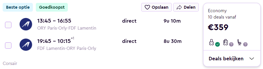 Andere voorbeelddata vanuit naar Guadeloupe: