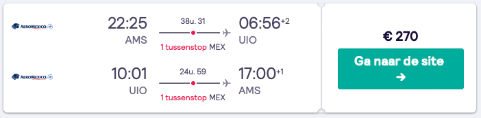 WOW! Vlieg nu SPOTgoedkoop naar het veelzijdige Ecuador! Doorkruis de hoge gebergtes van de Andes, maak een tocht door het Amazone regenwoud of breng een bezoek aan de Galapagos eilanden! Door een fout tarief vlieg je momenteel voor maar €270 retour van Amsterdam naar Quito in Ecuador! De vliegtickets zijn beschikbaar voor de periode november tot en met maart. Boek snel, want dit is een uitzonderlijke prijs!