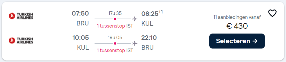 Brussel – Kuala Lumpur – €430