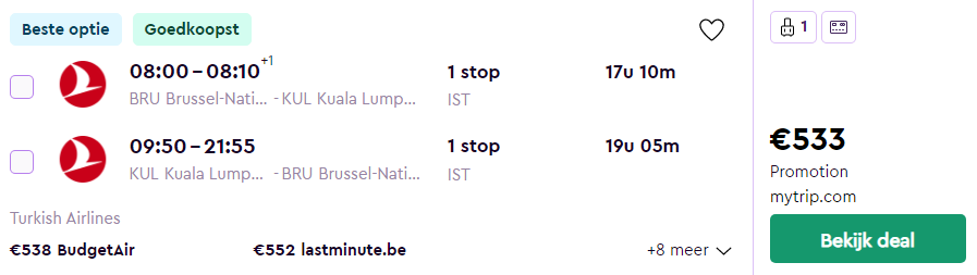 Om deze vlucht goedkoop te boeken, kan je het best gebruik maken van de zoekmachine Momondo. Deze website vergelijkt verschillende boekingssites waardoor je altijd de goedkoopste vlucht boekt.