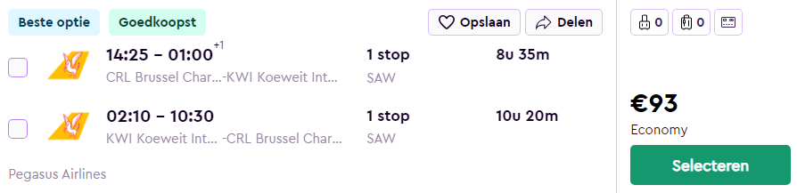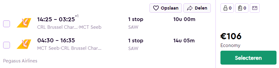 Wauw! Bij de luchtvaartmaatschappij Pegasus Airlines zijn er nu spotgoedkope vliegtickets naar diverse plaatsen in het Midden-Oosten! Vlieg vanaf €87 retour naar Koeweit, Sharjah (nabij Dubai), Muscat (Oman), Doha (Qatar), Bahrein, Teheran (Iran), Bagdad of Erbil (Irak), Karachi (Pakistan) of Riyad (Saoedi-Arabië) met vertrek vanuit Charleroi