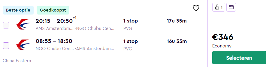 Amsterdam – Nagoya – €346