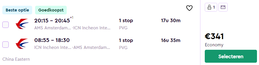 Amsterdam – Seoel – €341