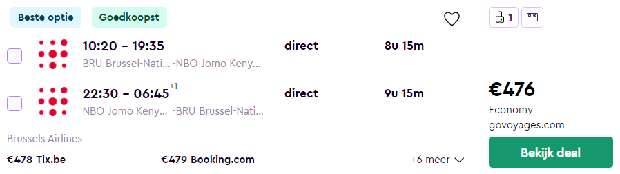 Ga op safari en spot de big five, leer meer over de Masai cultuur of ga relaxen op één van de vele uitgestrekte zandstranden langs de kust. Door een nieuwe route bij de luchtvaartmaatschappij Brussels Airlines er momenteel goedkope vliegtickets beschikbaar naar Kenia! Je vliegt deze zomer rechtstreeks van Brussel naar Nairobi in Kenia voor maar €476 retour!