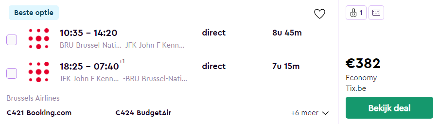 Brussel – New York – €382 (Rechtstreeks)