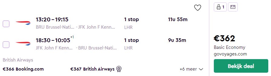 Brussel – New York – €387 (Rechtstreeks)