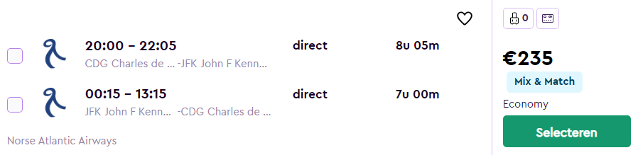 Parijs – New York – €235