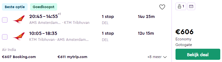 Amsterdam – Kathmandu (Nepal) – €607