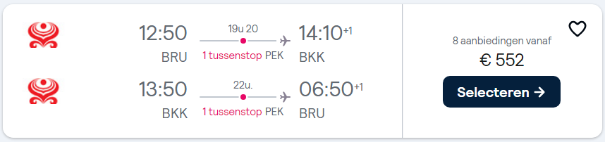 Brussel – Bangkok – Peking – Brussel – €570