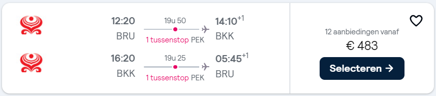 Ontdek de authentieke Aziatische cultuur en prachtige natuur van Thailand! Door een promotie bij de luchtvaartmaatschappij 5* Hainan zijn er momenteel goedkope vliegtickets naar Thailand beschikbaar. Je vliegt nu voor maar €483 retour naar Bangkok vanuit Brussel!