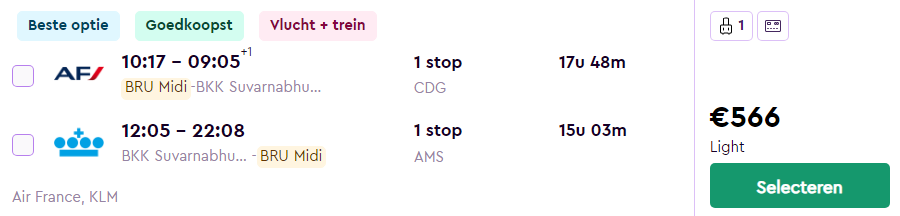 Ontdek de authentieke Aziatische cultuur en prachtige natuur van Thailand! Door een promotie bij de luchtvaartmaatschappijen Air France en KLM zijn er momenteel goedkope vliegtickets naar Thailand beschikbaar. Je vliegt nu voor maar €566 retour vanuit Brussel naar Bangkok! Deze vluchten zijn een “trein+vlucht” ticket waarbij je rechtstreeks via Parijs of Amsterdam naar Bangkok vliegt!